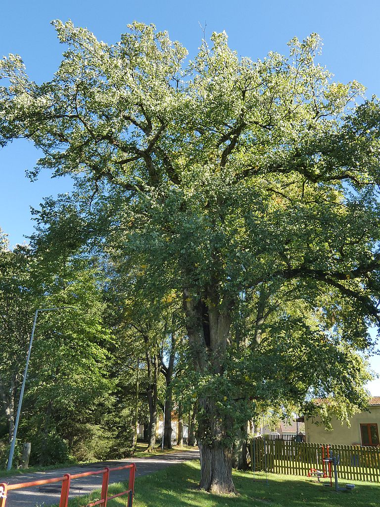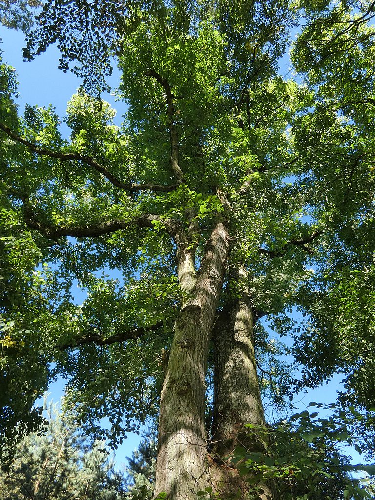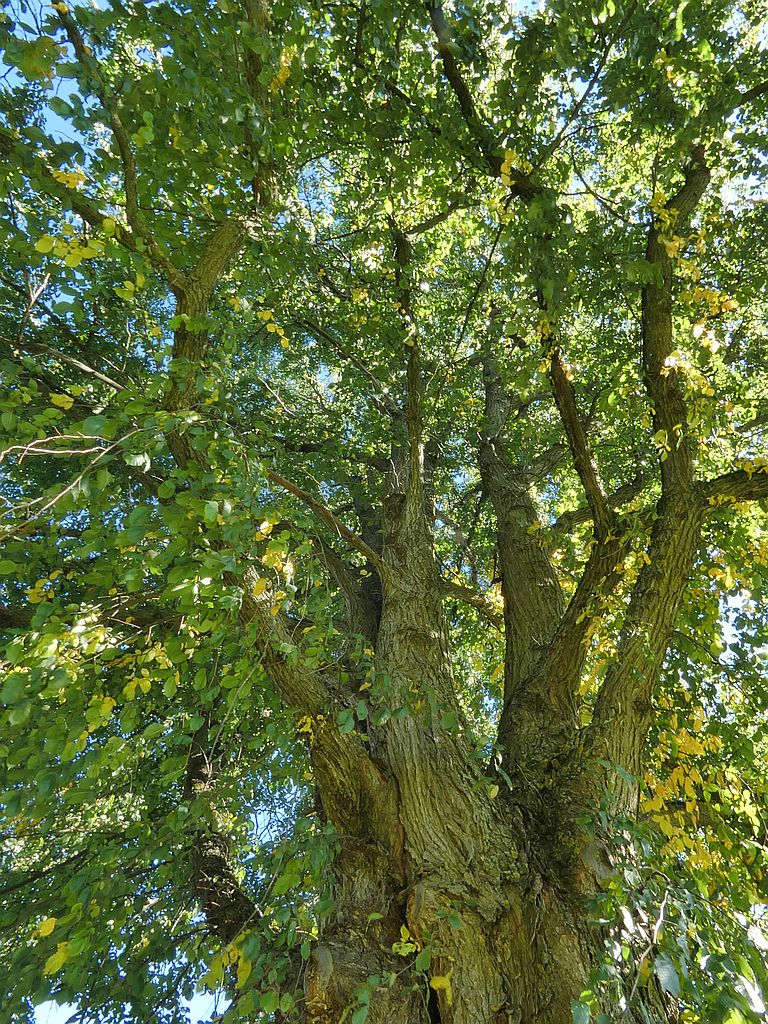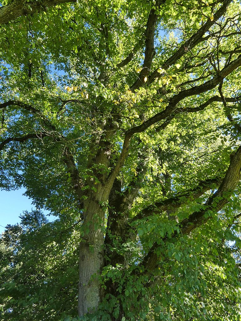 Jilm habrolistý s obvodem 328 cm a s výškou 23 m lemuje jako řada dalších jilmů cestu z Vacíkova k tamnímu loveckému zámečku (září 2025).